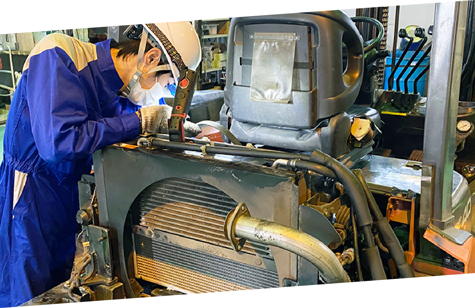 プロの整備士による確実に整備されたフォークリフトの提供ができます。また万が一の事故等があった場合でも安心の補償制度があります。安心してご活用していただけます。